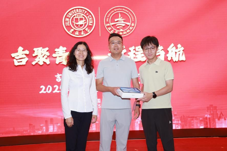 迎新會上,青島校友自編自演的文藝節(jié)目、“吉二代”才藝表演、互動游戲和抽獎活動將現(xiàn)場氣氛推向高潮。通信工程學(xué)院董宏志書記為2025屆青島新校友抽取了第一份幸運大獎。