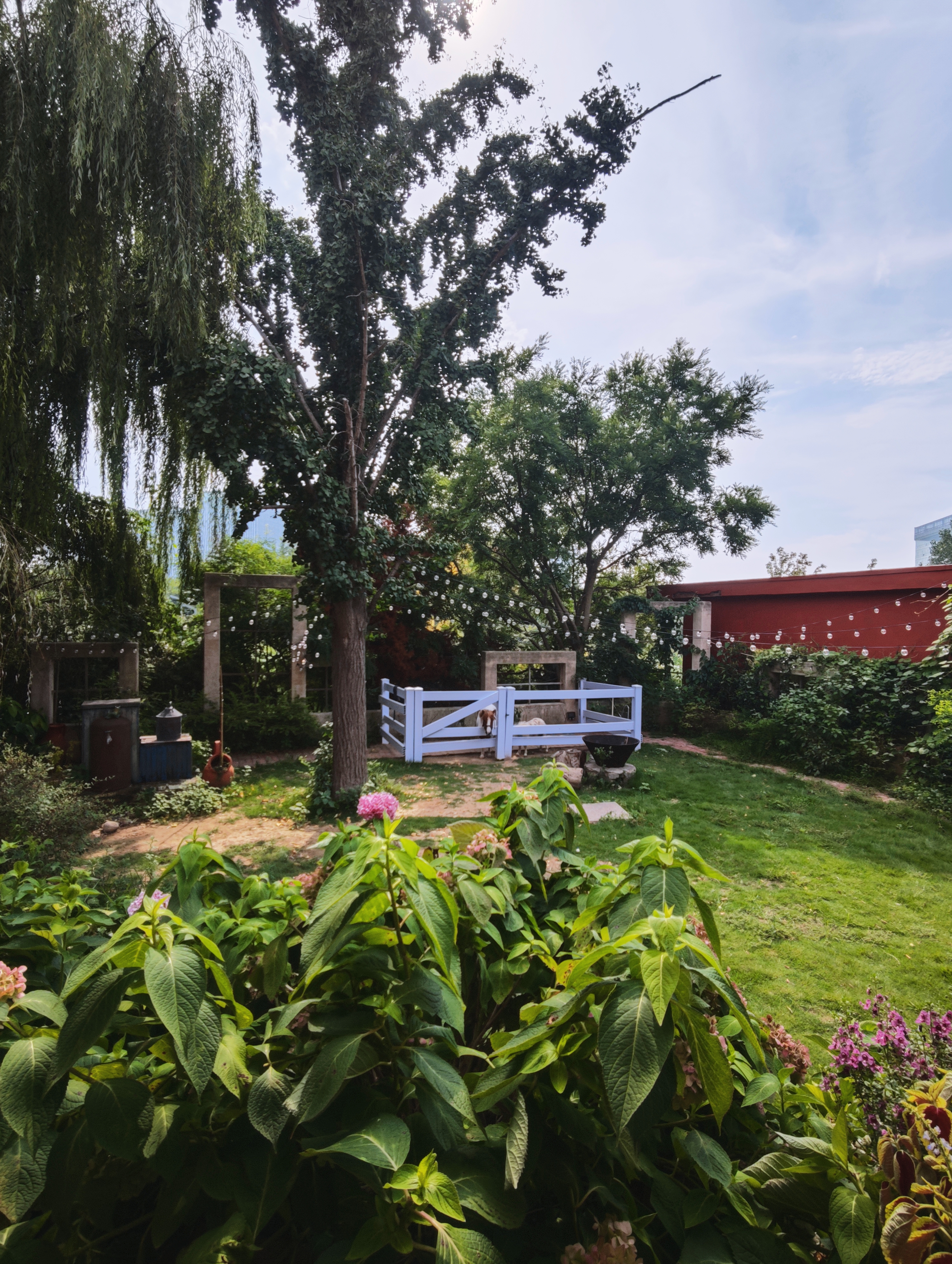 主理人一定是愛花、愛生活,最讓人驚喜的是,走出店側(cè)面,滿院的繡球花綻放,像闖進(jìn)了法式莊園,隨手一拍都是大片。