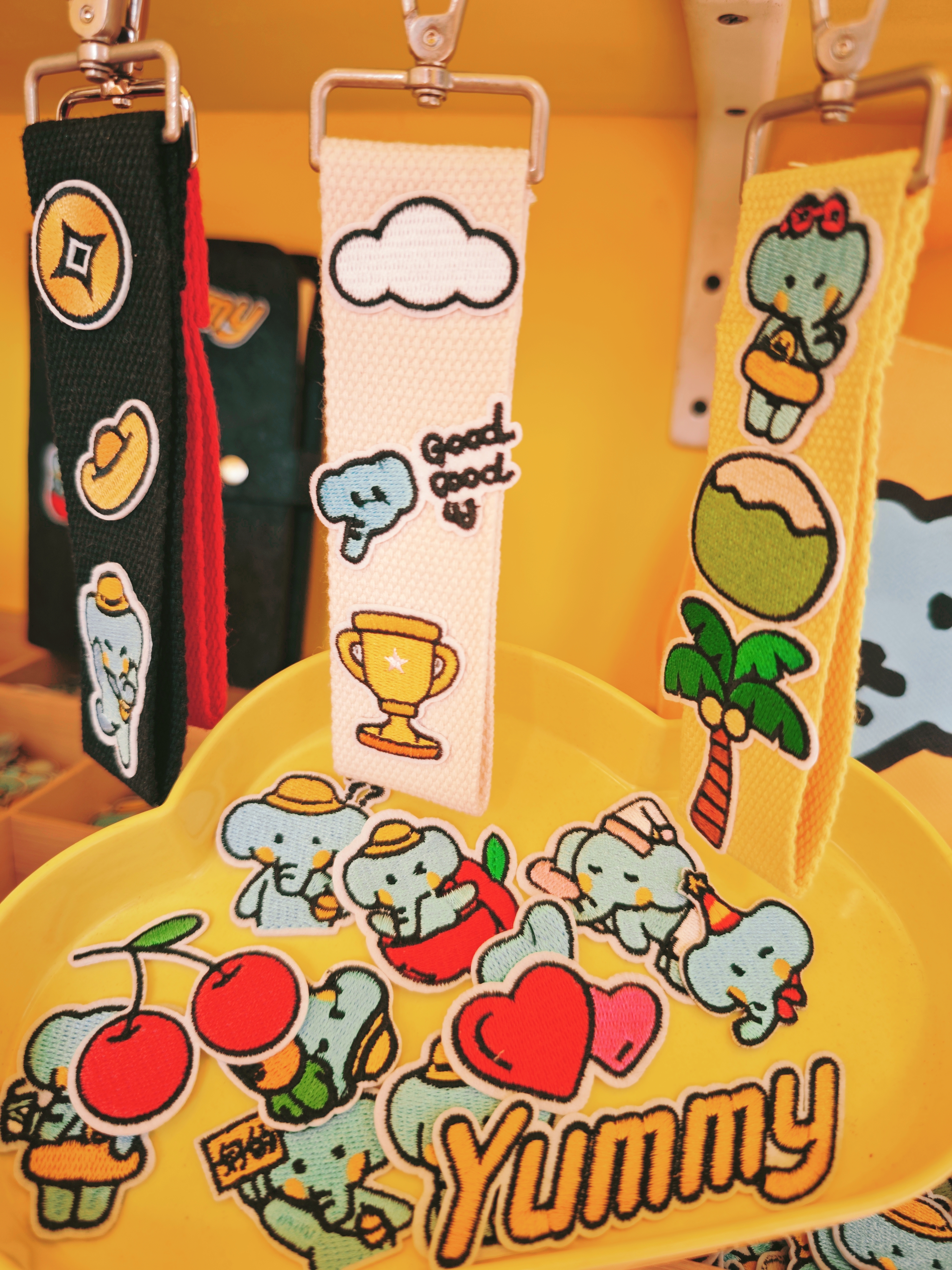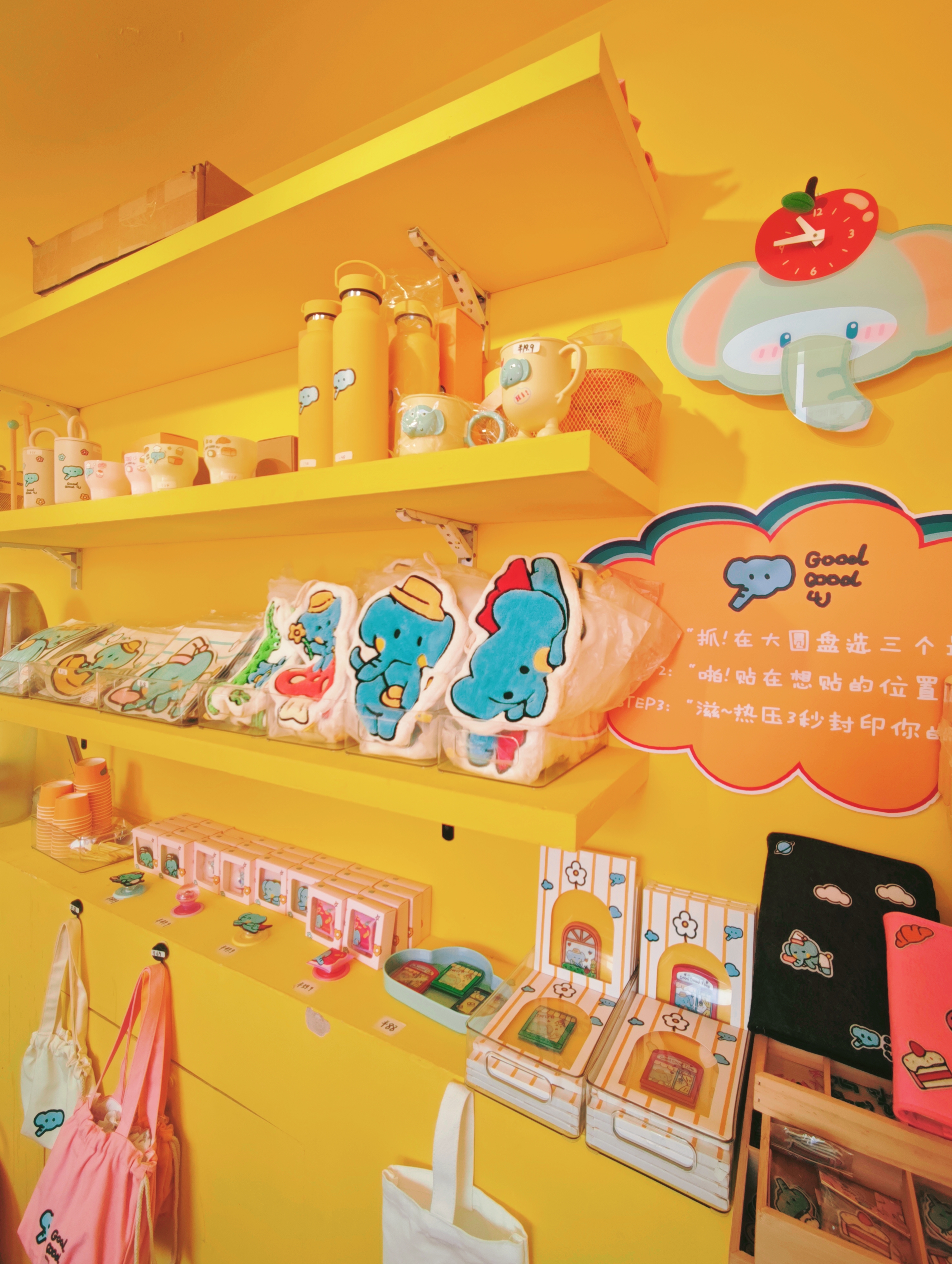 萌物暴擊:限定周邊墻裂安利,小象戒指、杯子、耳機殼、配飾、擦手巾、冰箱貼、小掛件等;9.9的牛乳冰淇淋奶fufu到心尖尖,性價比超高;DIY區(qū)最受歡迎,上百種補丁貼任選,熨燙出專屬小象谷子。(偷偷說:本子+掛件+包包+衣服都可以!)