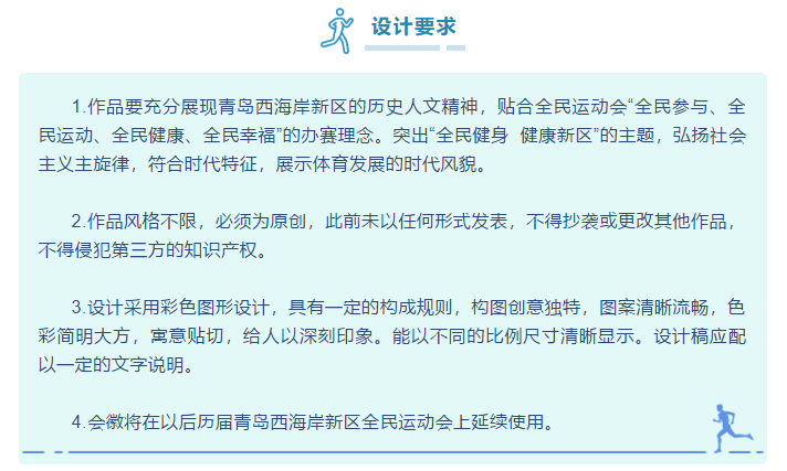 征集!青島西海岸新區(qū)全民運(yùn)動(dòng)會(huì)會(huì)徽等你來設(shè)計(jì)!