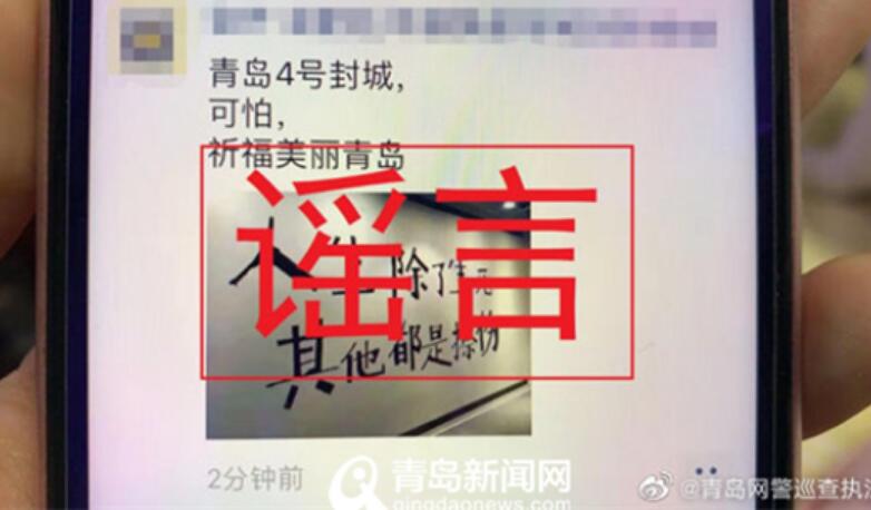 辟謠!青島四人發(fā)布謠言信息 被公安部門教育訓(xùn)誡