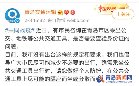 網(wǎng)傳青島市民乘坐公交需要檢查身份證?假的別信!
