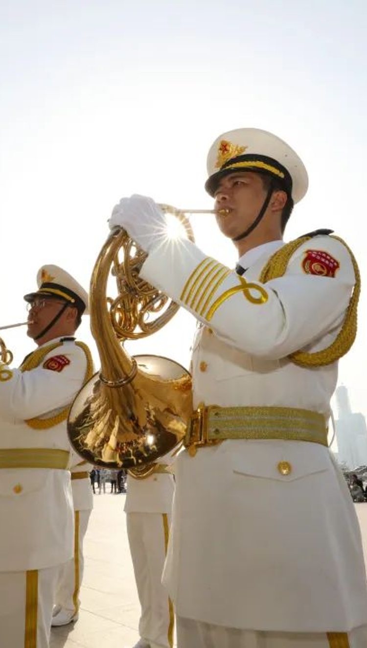 海軍軍樂(lè)隊(duì)在海軍博物館進(jìn)行海軍軍樂(lè)行進(jìn)表演