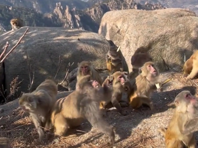 嶗山小嶗頂有猴群出沒 目測40余只仿佛身處花果山